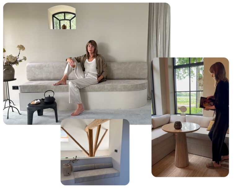 “Dat ik nofruit benaderde voor deze zitplekken, was een no-brainer voor mij. Ze hadden al kussens gemaakt voor mijn vorige huis, en ook mijn tuinkussens zijn van nofruit. Destijds deed ik alles online – van ontwerp tot bestelling – wat goed werkte. Dit keer had ik meer vragen en kreeg ik te maken met andere vormen, rondingen en mallen. Hiervoor heb ik veel contact gehad met Gabriella.